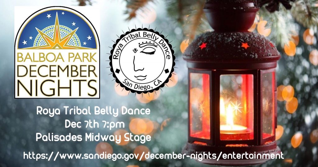 Balboa Park December Nights – Dec 7 2018 at 7 PM admin December 5, 2018 March 8, 2021 No Comments on Balboa Park December Nights – Dec 7 2018 at 7 PM Balboa Park December Nights featuring Roya Tribal Belly Dance December 7, 2018 7:00 PMPalisades Midway Stage https://www.sandiego.gov/december-nights/entertainment