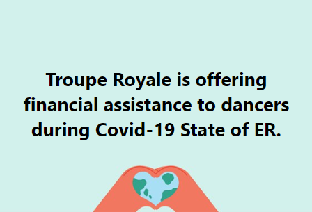 If your employer is honoring a Covid-19 quarantine, please message Aleta Marie Kaplan with your details to financial assistance for your troupe dues.